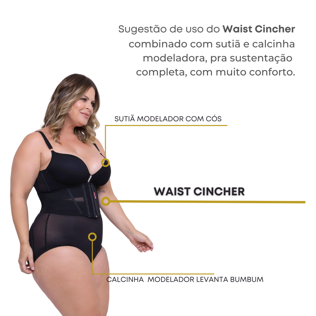O Waist Cincher Cinta Verão é a cinta modeladora perfeita para o calor. Tronco curto, com 15cm de altura, funciona como um cinturão de sustentação, dando um aspecto "vincado" e evidenciando a cinturinha.